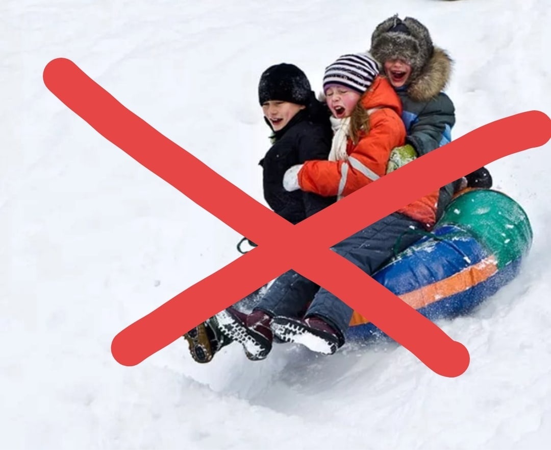 Также представляет огромную опасность катание с горок на подручных средствах (картонки, полиэтиленовые пакеты и т . п.).