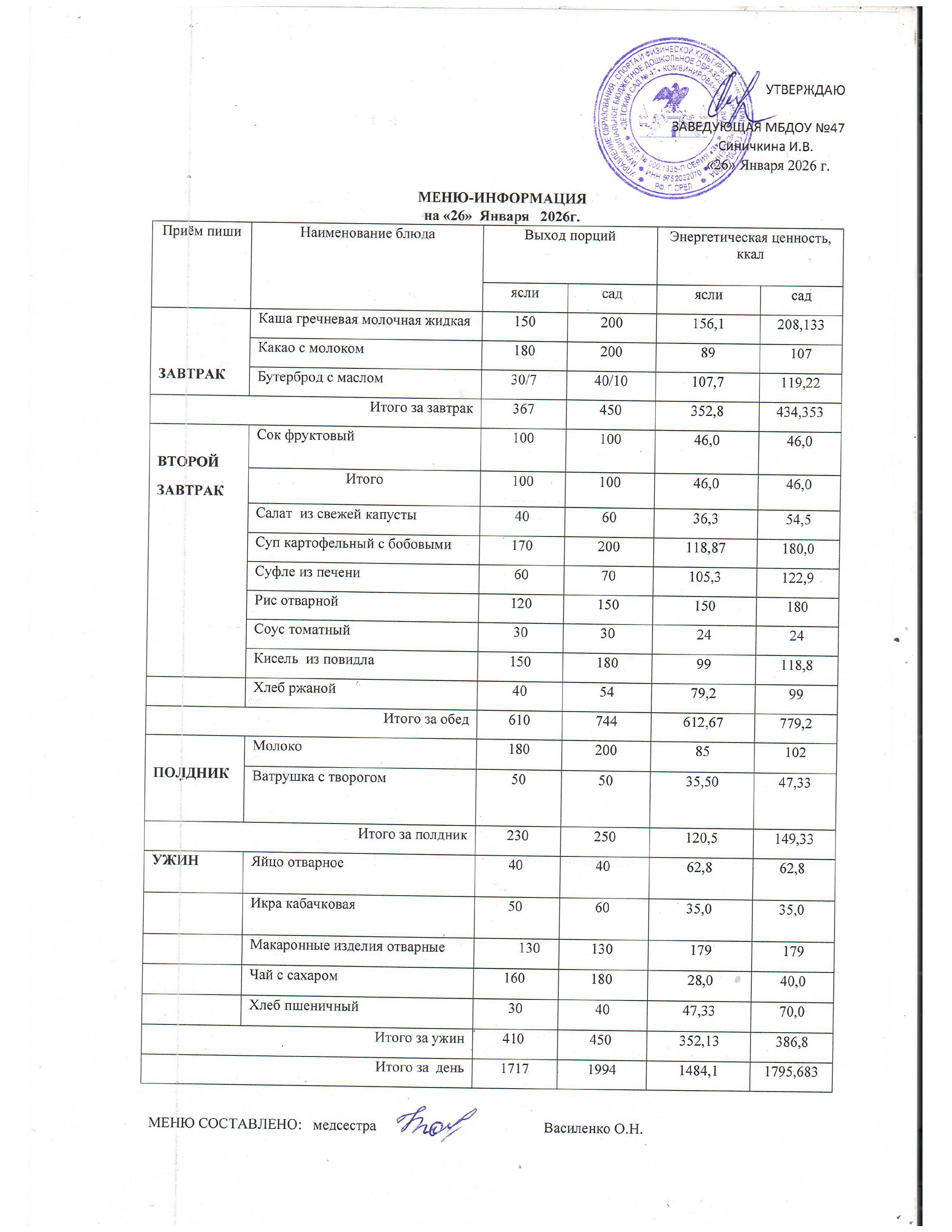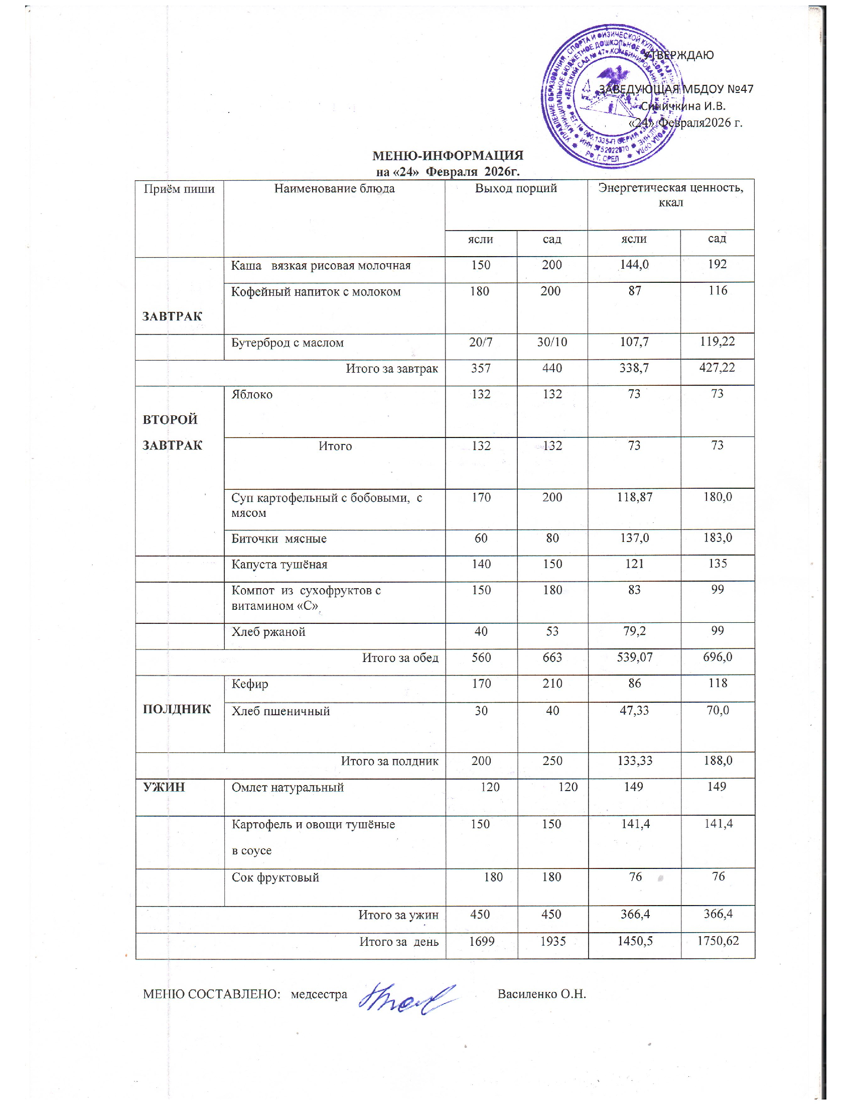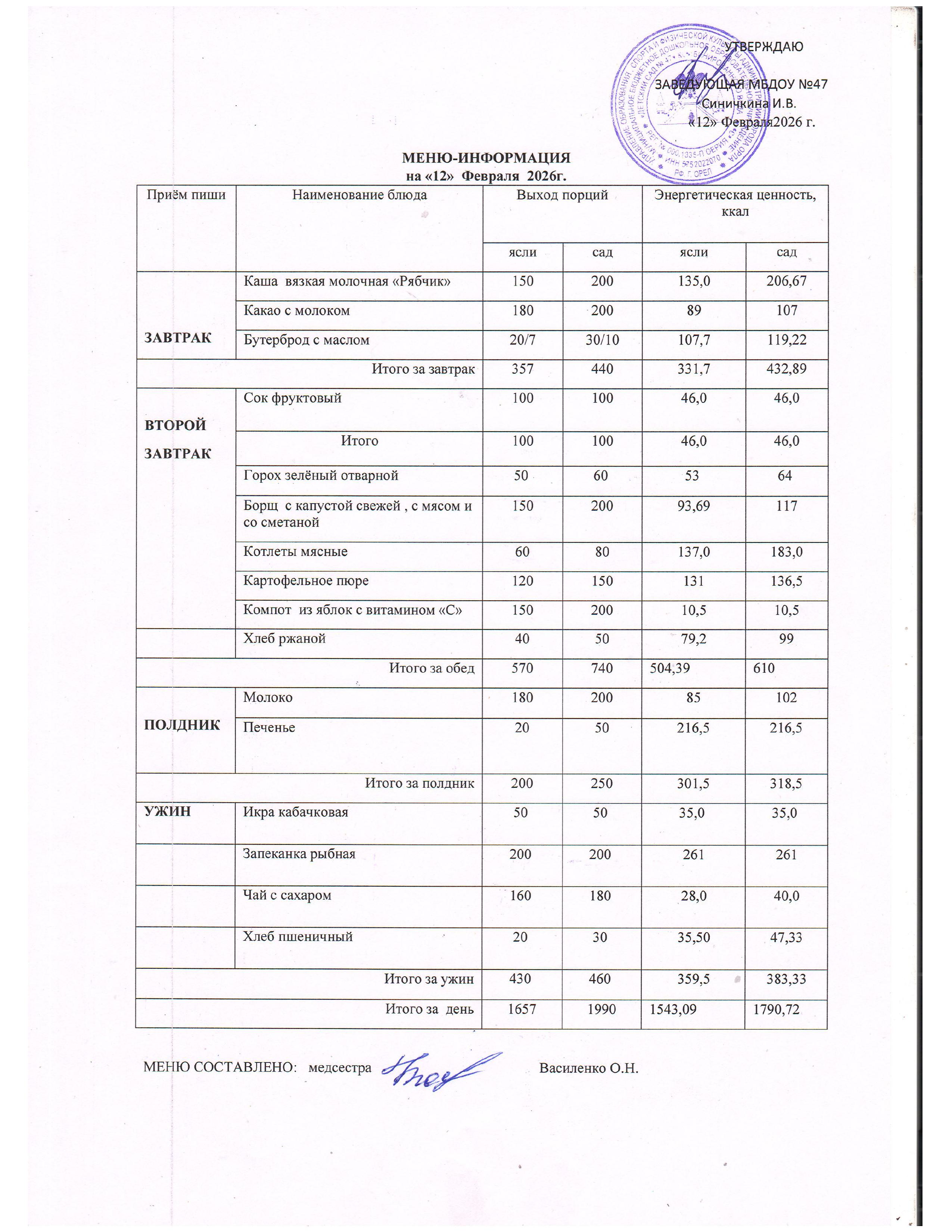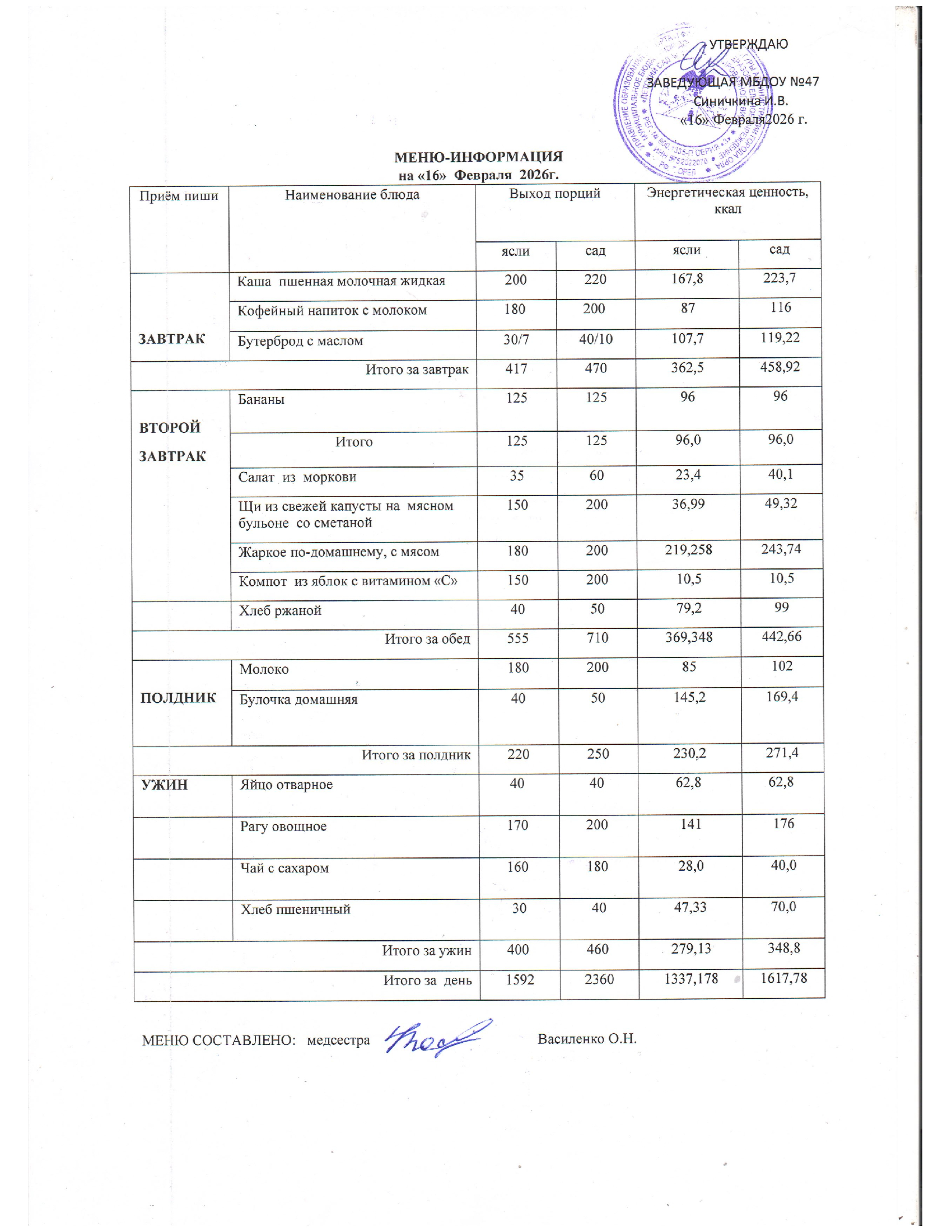 Меню горячего питания