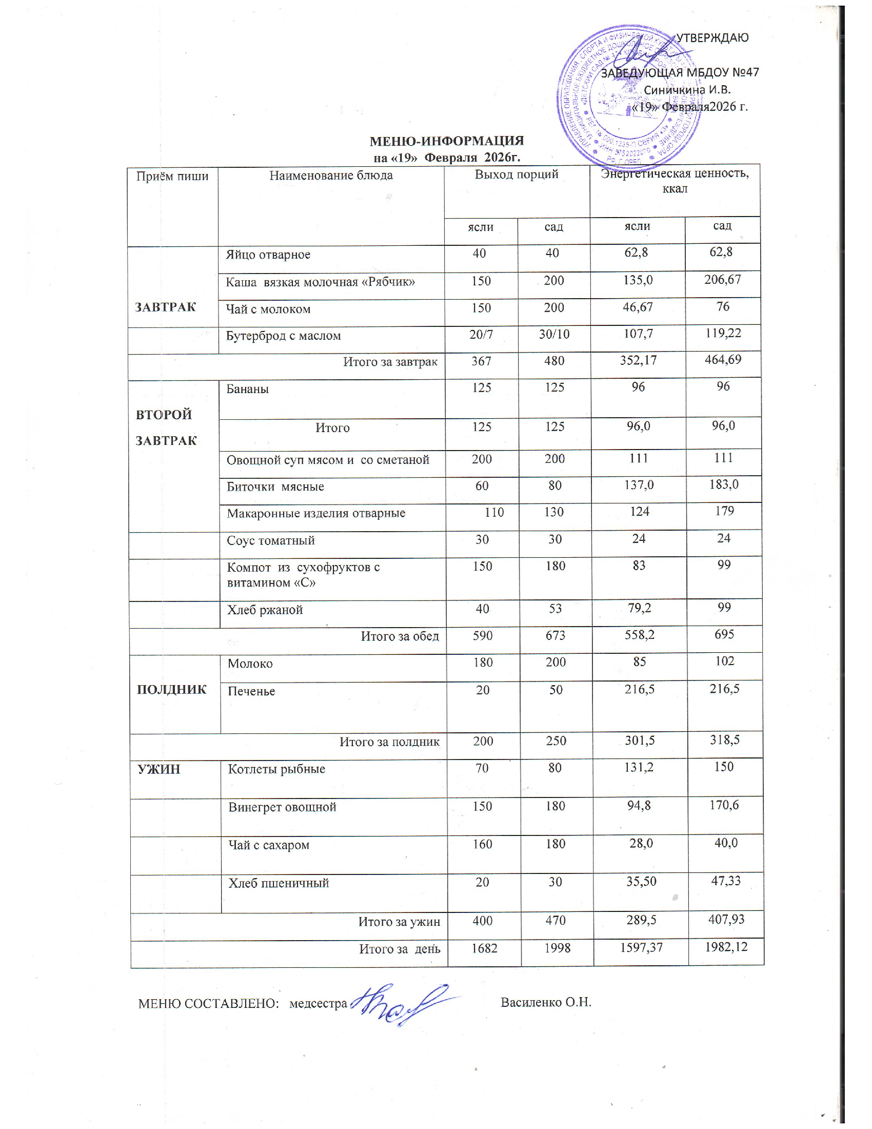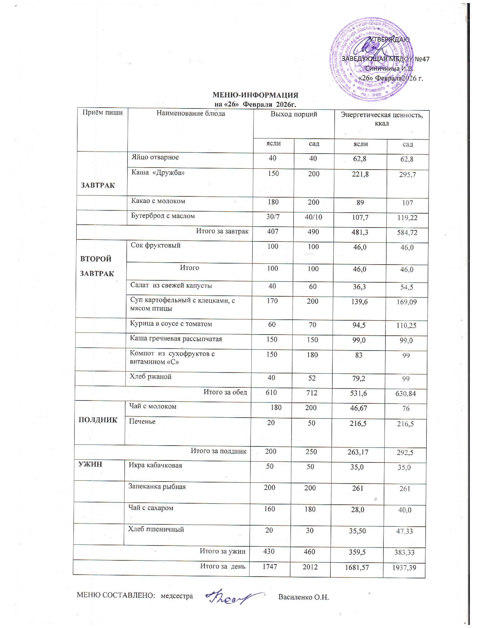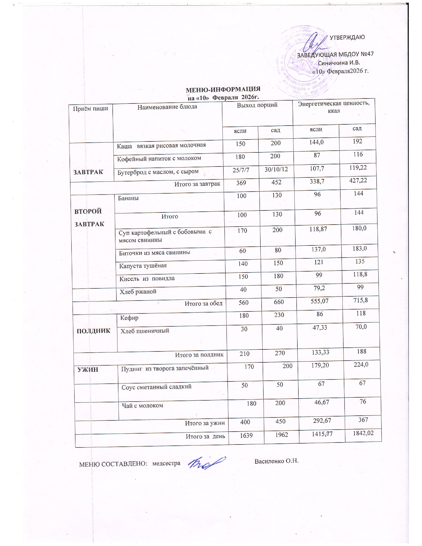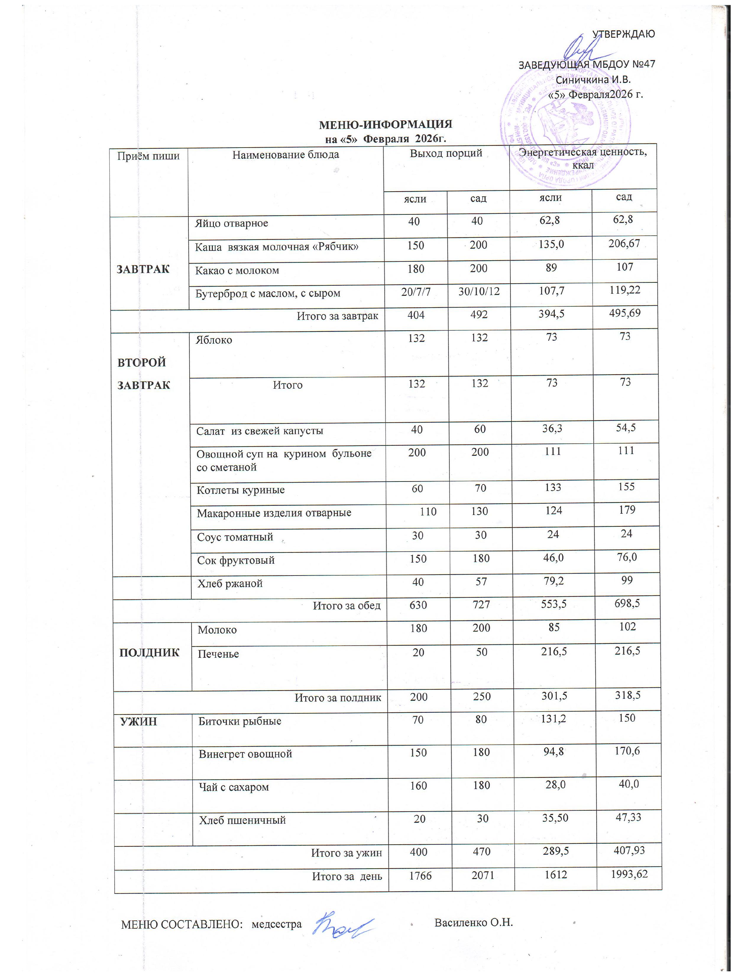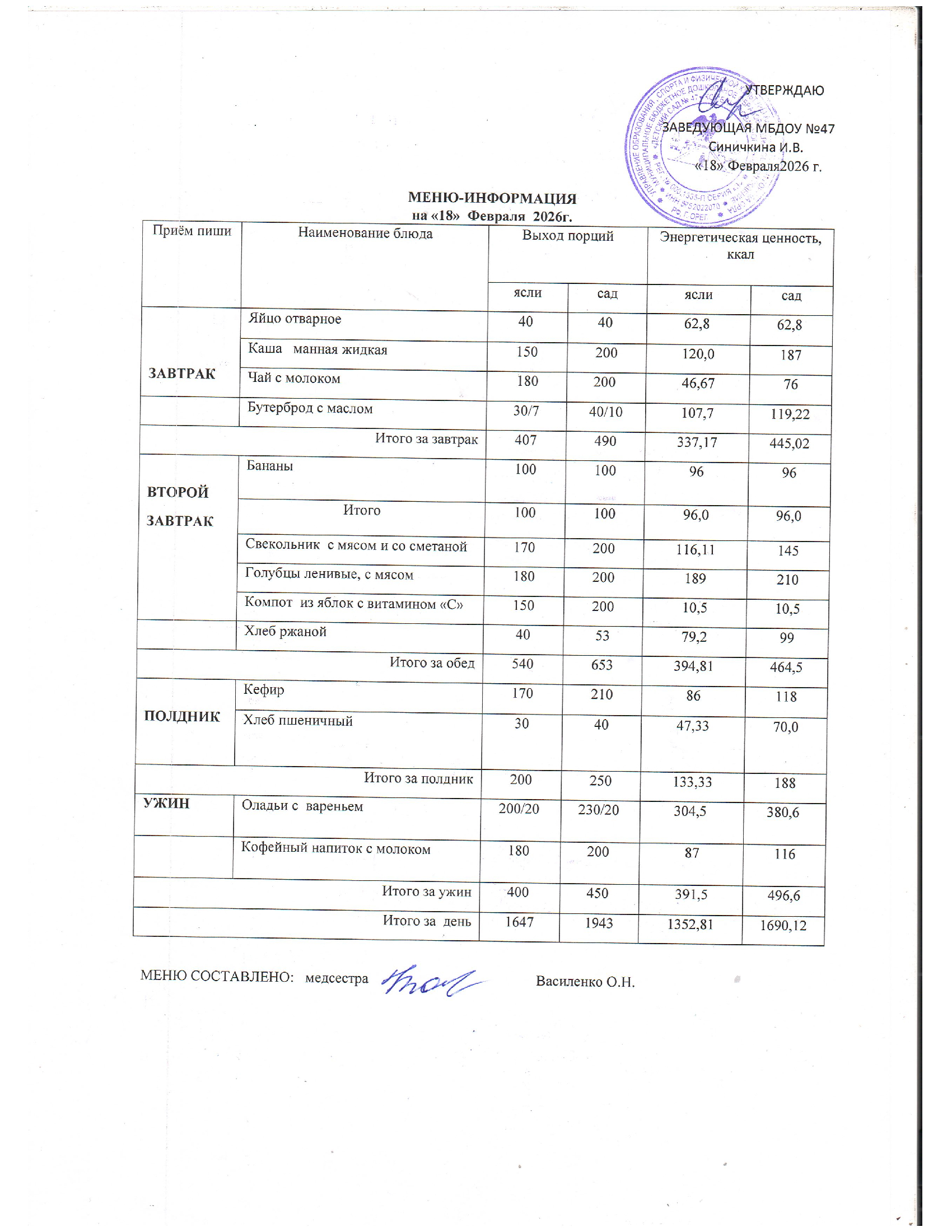 Меню горячего питания