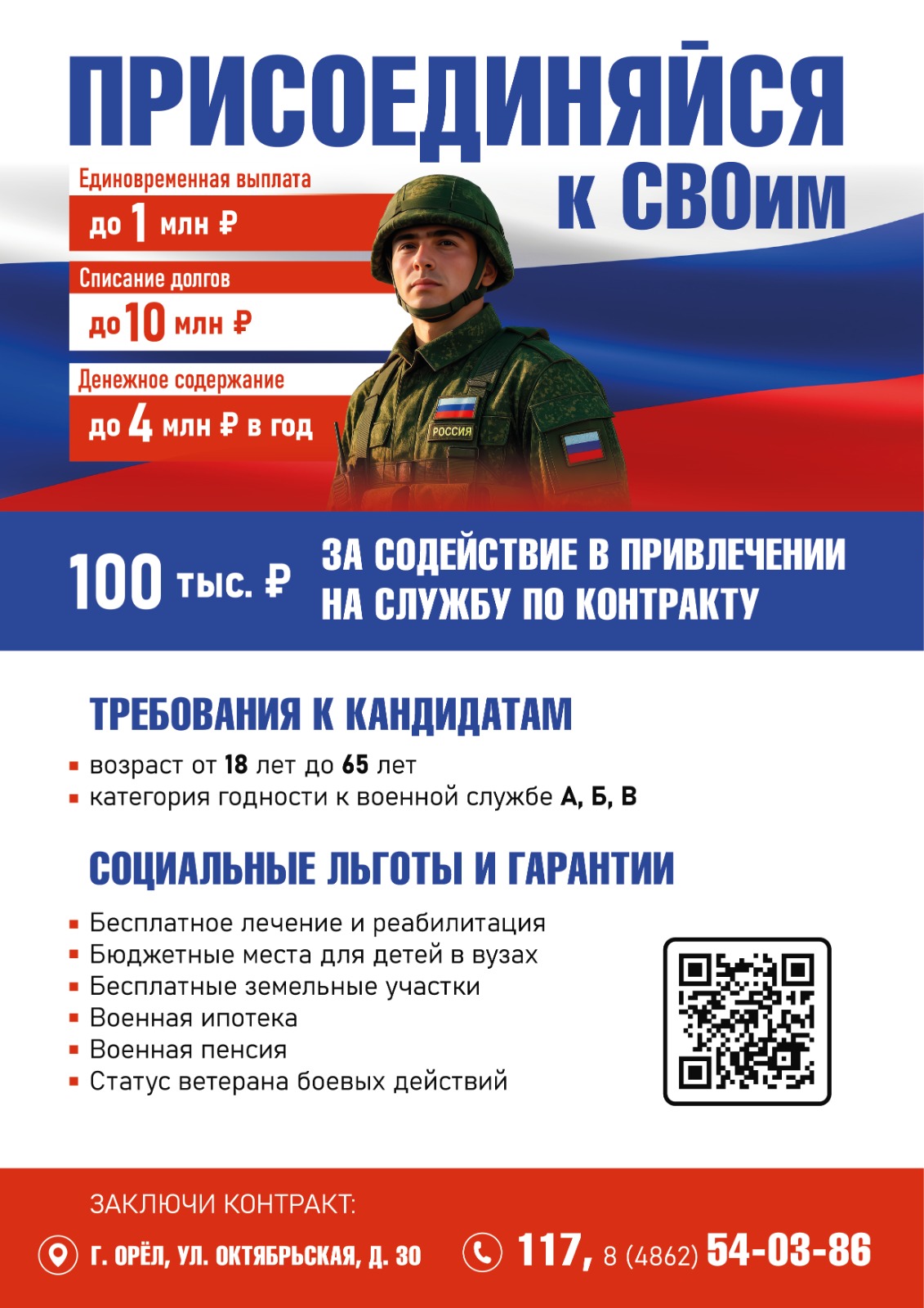 - 1. Единовременная денежная выплата в размере 400 тысяч рублей, заключившим контракт для участия в специальной военной операции.